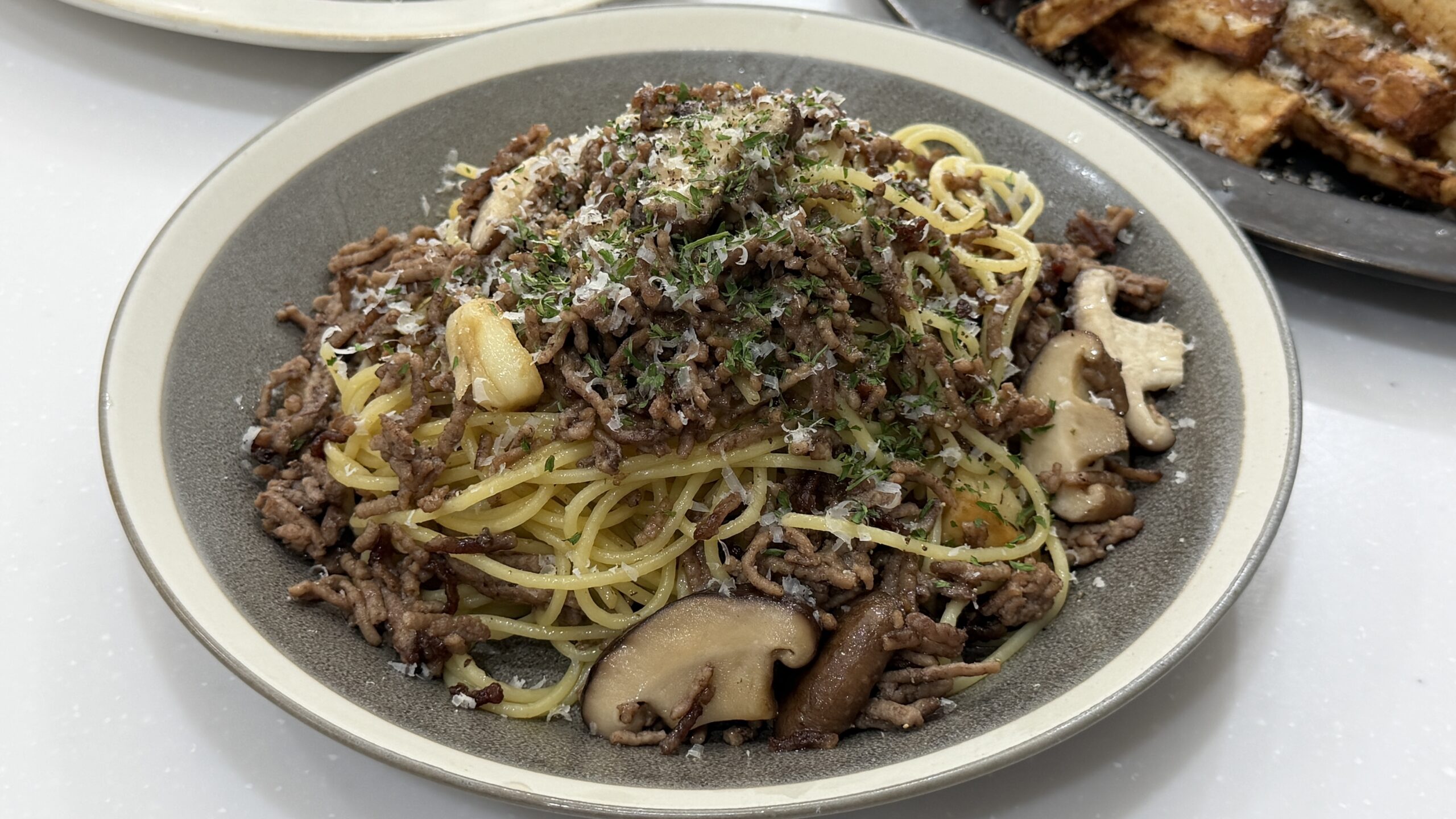 旨味の相乗効果が止まらない!「極厚しいたけと粗挽き肉の絶品ボロネーゼ・ビアンコ」
