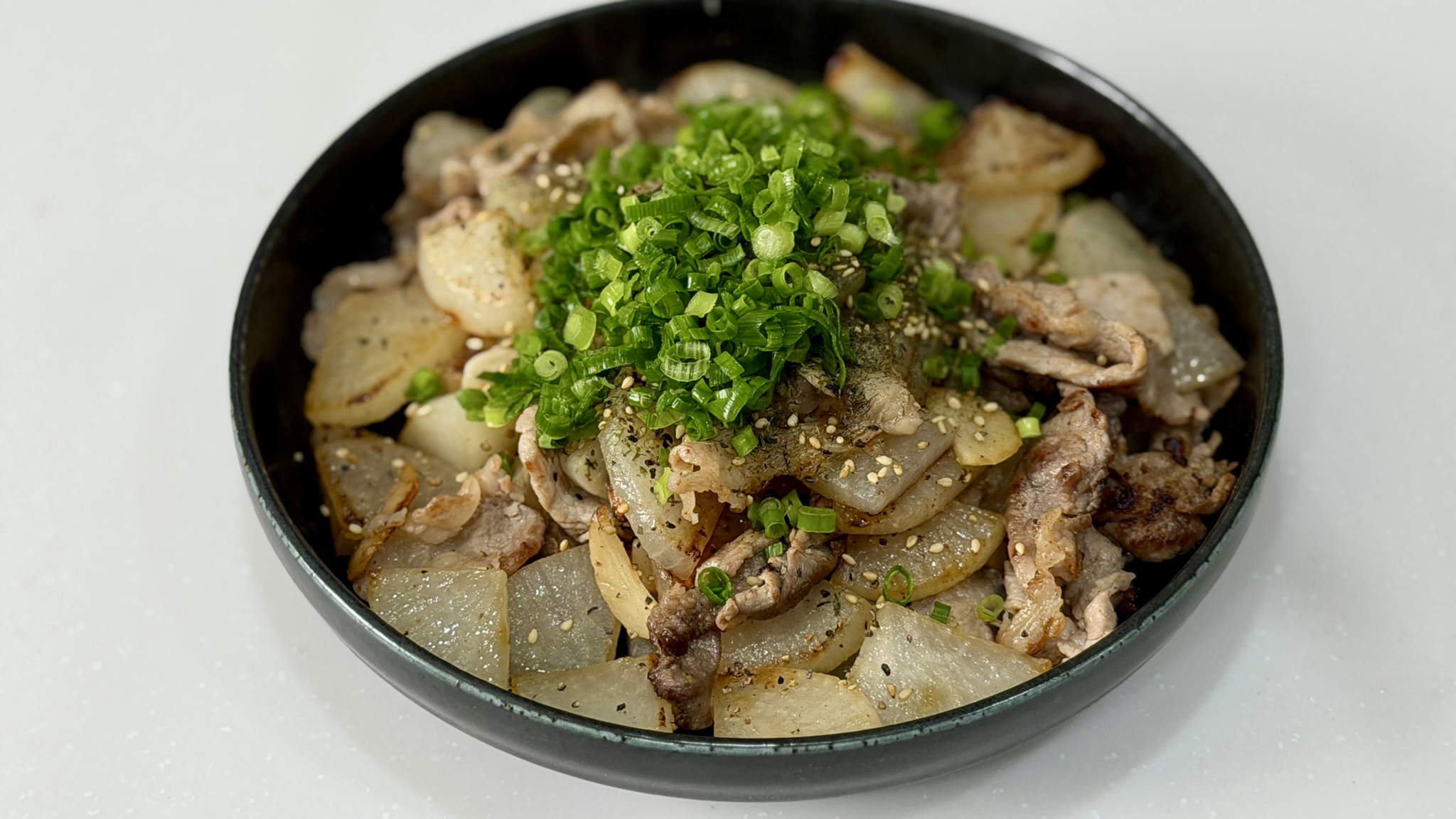 大根と豚こまの極旨スタミナ塩ガリバタ炒め