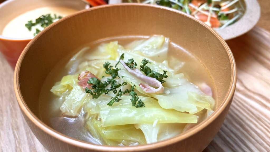 旨みが心に染み渡る!クタクタうまキャベツとベーコンの「至福の濃縮コンソメスープ」