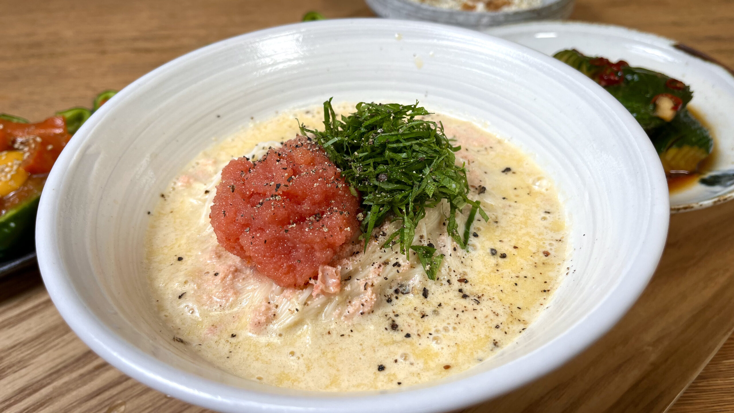 バターのコクと明太子の旨味が豆乳に溶け出し、最後の一滴まで飲み干したくなる美味しさ!