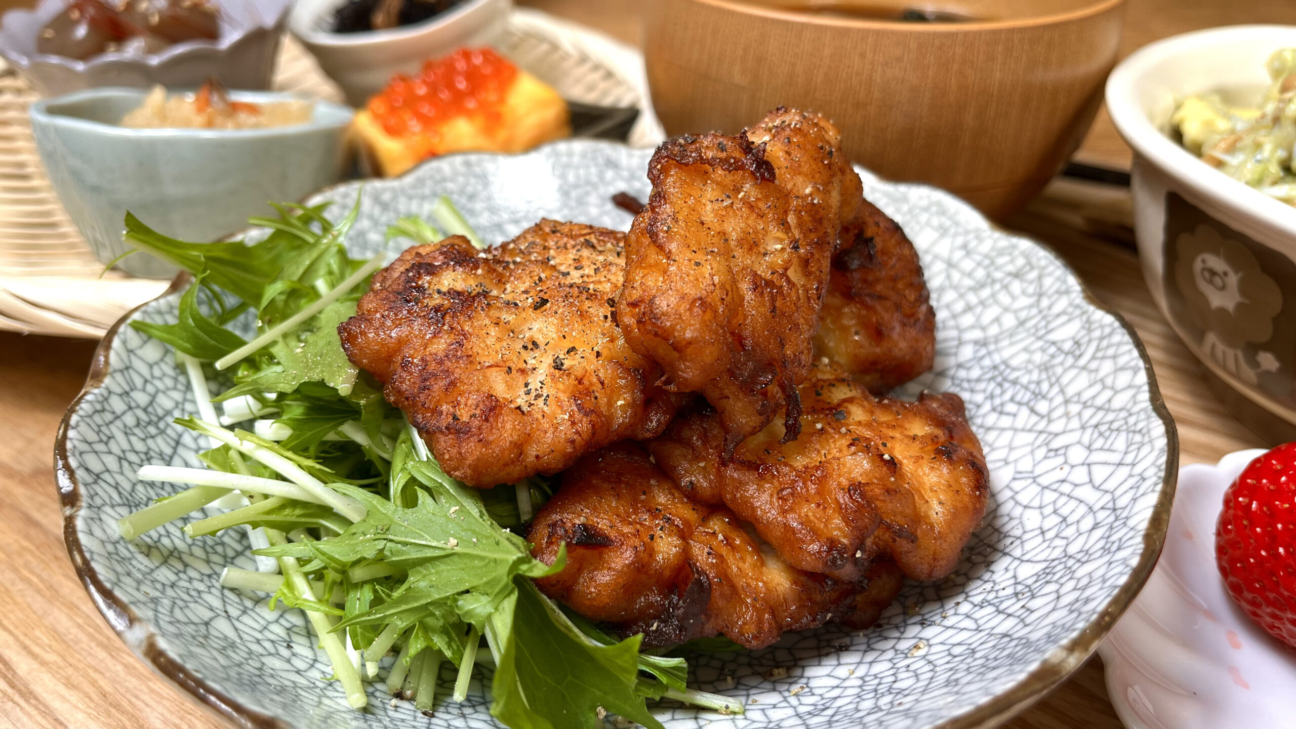 この唐揚げ、本当に鶏むね肉!?と疑うほどの柔らかさです。一口食べればお箸が止まりません!炊き立てのご飯をたっぷり準備して召し上がってください!