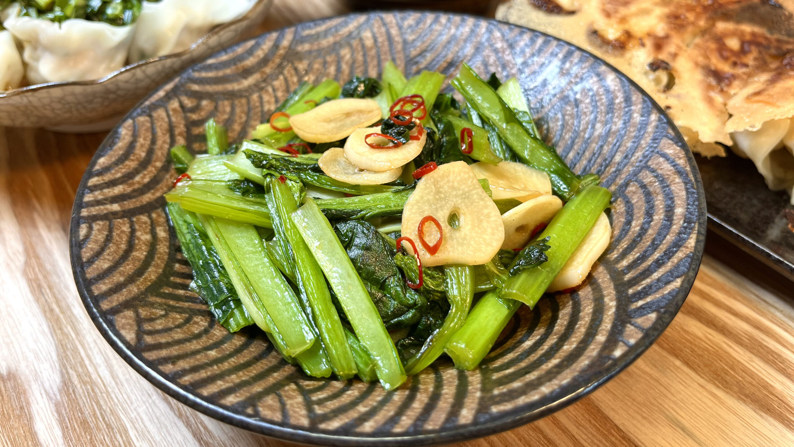 強火で一気に仕上げることで、小松菜の甘みとにんにくの香ばしさを最大限に引き出しました。